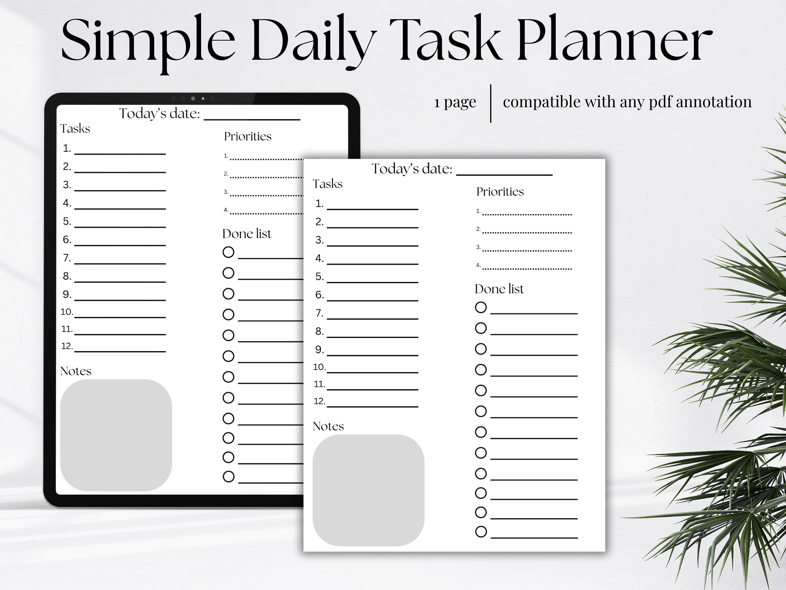 Simple Digital Daily Task Planner, Daily Planner, Task Planner